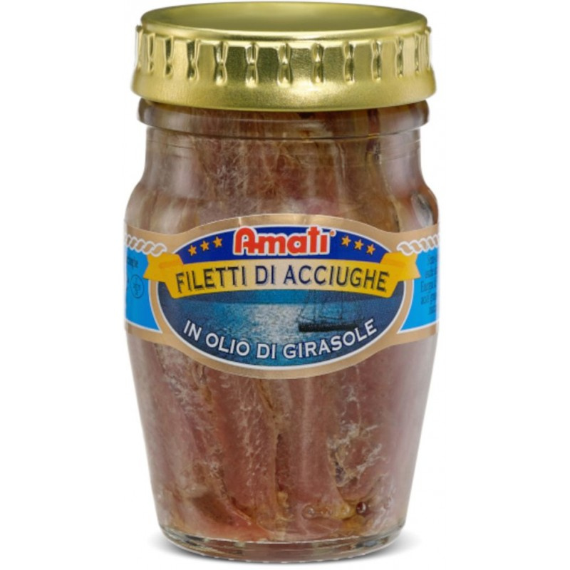 Filety anchois w oleju - Filetti di acciughe in olio di girasole - Amati 80 g