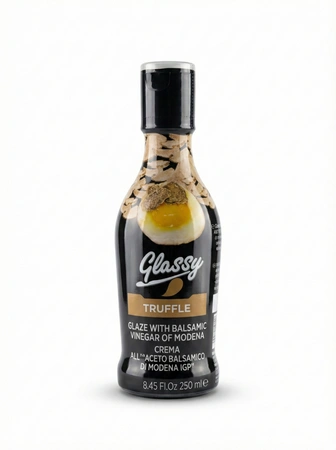Glassy Truffle Glaze to kulinarna biżuteria dla Twoich dań. Ten gęsty, aksamitny sos powstaje na bazie oryginalnego Octu Balsamicznego z Modeny (IGP), wzbogaconego szlachetnym aromatem trufli. To połączenie słodko-kwaśnych nut balsamicznych z ziemistym, głębokim zapachem trufli tworzy kompozycję, która zmienia zwykły posiłek w restauracyjne doświadczenie.
