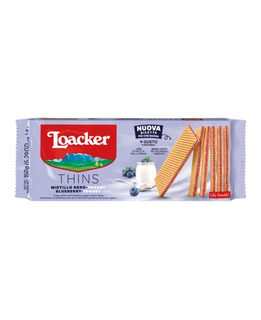 Włoskie wafelki jagodowo - jogurtowe to warstwa pysznego, kremowego nadzienia z ręcznie zbieranych jagód przełożona dwoma lekkimi i chrupiącymi wafelkami.