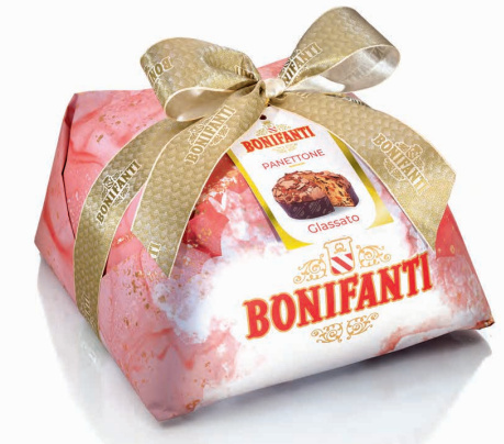 Glazurowane Panettone charakteryzuje się klasyczną polewą z orzechów laskowych Bonifanti, wzbogaconą całymi migdałami, które pochodzą ze słonecznej Apulii.